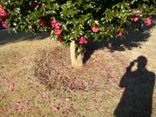 満開後、この木の根元には紅色のじゅうたんができあがります。