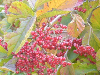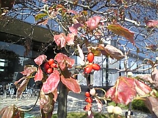 ハナミズキの実。太陽に透かすと燃えるように赤く