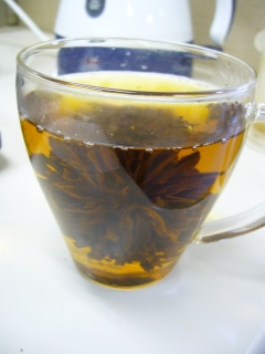牡丹のようにあしらった工芸茶です。抽出するとポットの中で、茶葉が