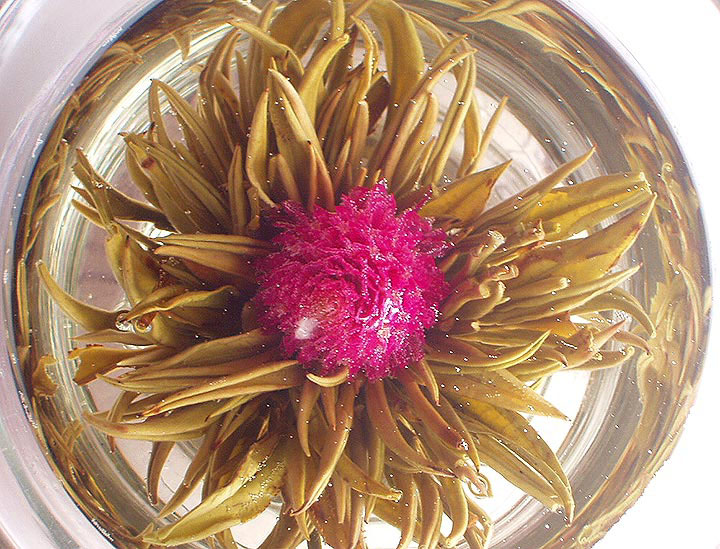 味はそこそこだが、茶葉の中から花が現れる様子は