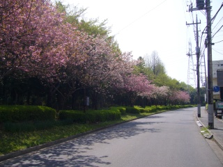 筑波大の横の桜並木。ソメイヨシノ、スイセン、