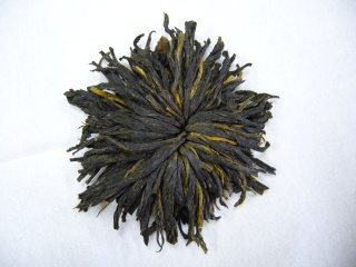 牡丹のようにあしらった工芸茶です。抽出するとポットの中で、茶葉が