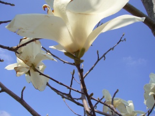 モクレンは上、コブシは横に向かって咲く。